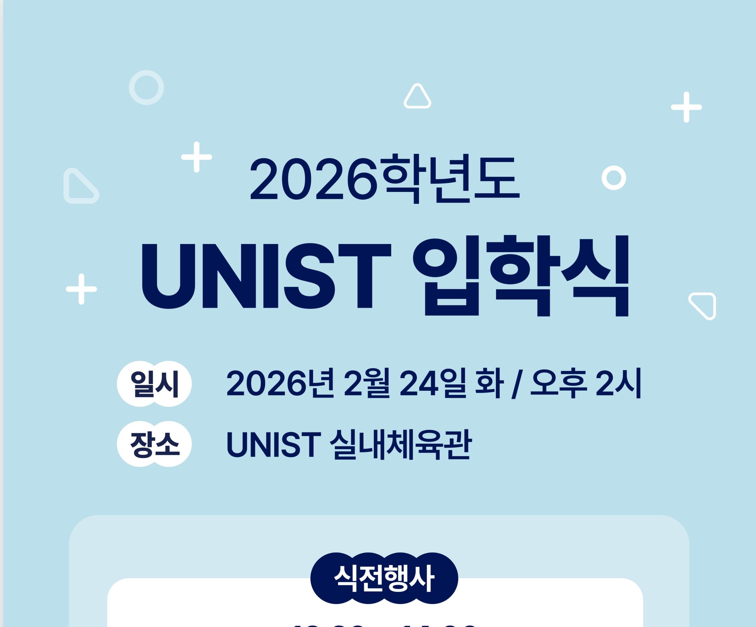 2026. 02. 10 2026학년도 UNIST 입학식 일정 안내_2026.2.24(화) 안녕하세요, 신입생 여러분. UNIST 새내기학부 행정실입니다. 2026학년도 입학식에 신입생 여러분과 학부모님을 진심으로 초대합니다. 오랜 기다림 끝에 맞이한 새로운 시작, 그리고 UNISTAR로서 첫걸음을 내딛는 뜻깊은 순간을 함께 축하하고자 합니다. 설렘 가득한 출발선에서 여러분의 빛나는 미래를 응원합니다. 소중한 첫 시작의 자리에 꼭 참석하시어 그 순간을 함께해 주시기…
